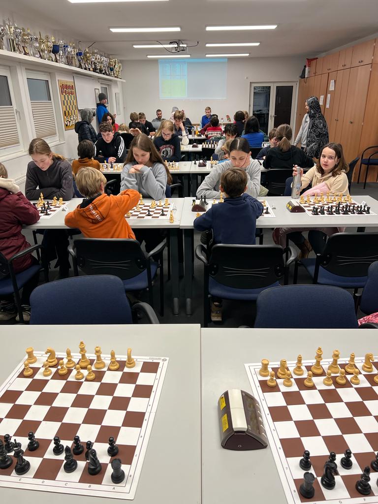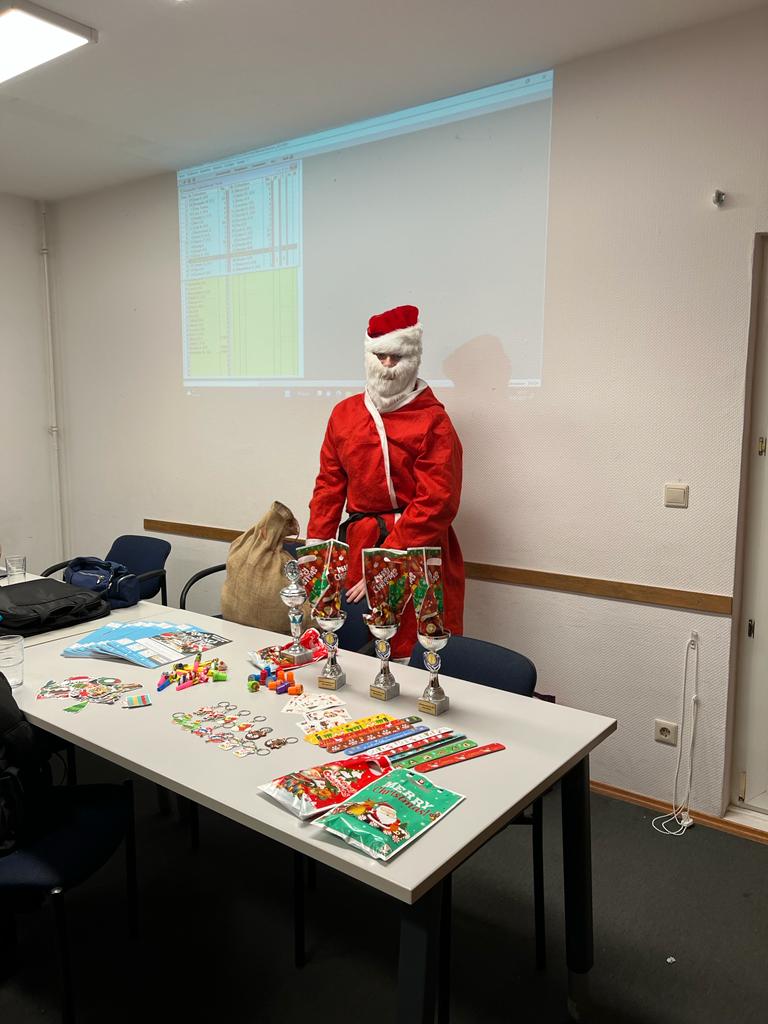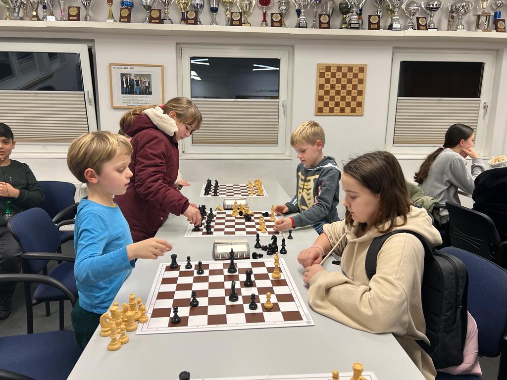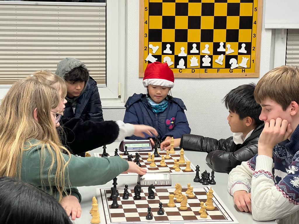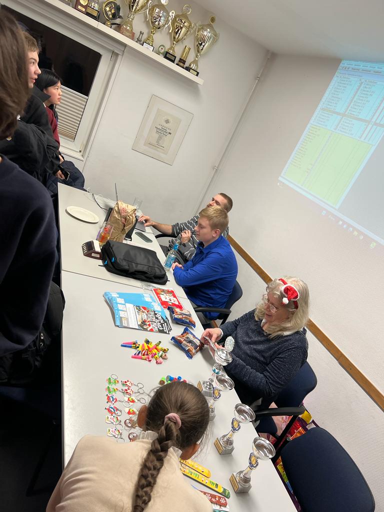 Am Freitag, 15. Dezember 2023 fand wieder vor der Winterferienpause die HSK-Jugendweihnachtsfeier statt. 34 Kinder und Jugendliche hatten wieder viel Spaß beim alljährlichen „Weihnachtsblitzen“ mit nur 5 Minuten Bedenkzeit pro Spieler:in und Partie. Gut gelaunt ließen so alle Klub-Kids und -Teenies das Jahr ausklingen. Lecker waren die Süßigkeiten auf den bunten Tellern und die gespendeten Kekse und Kuchen, vielen herzlichen Dank dafür! Auch der Nikolaus kam, Dank einer großzügigen Spende, wieder mit seinem gefüllten Sack im Klub vorbei und verteilte Überraschungen an alle Anwesenden.
