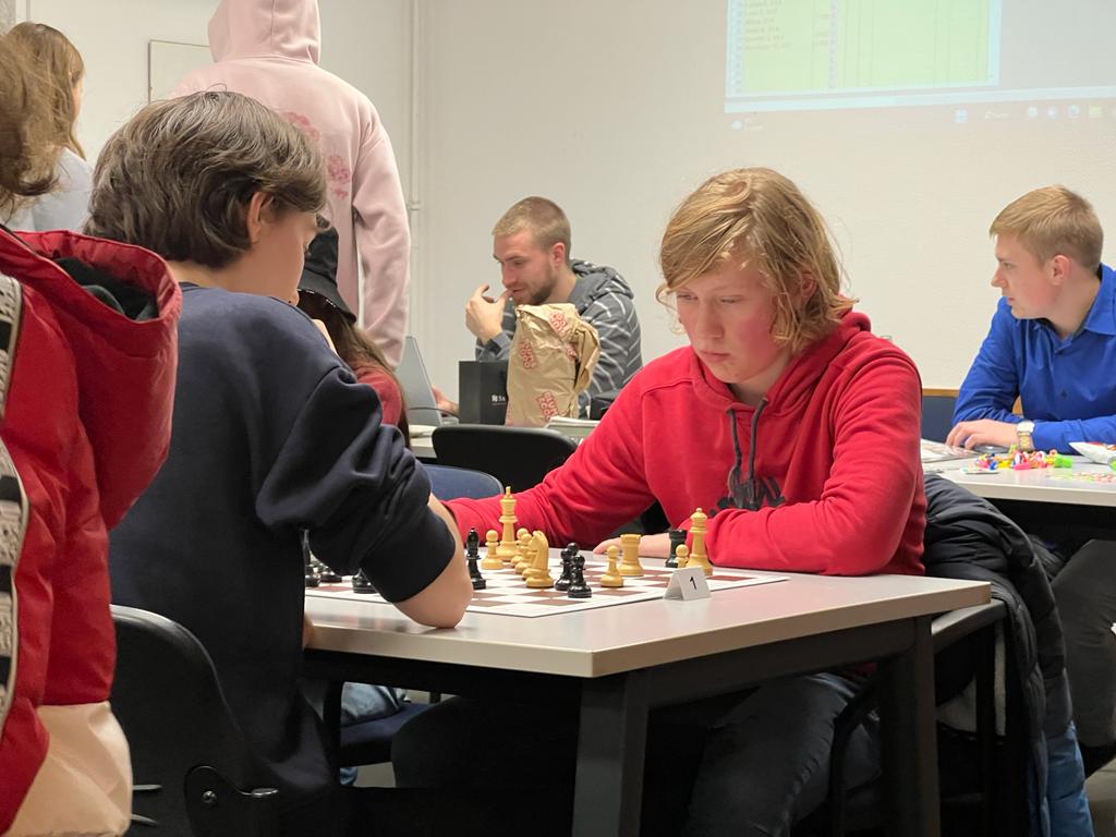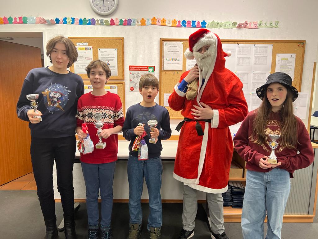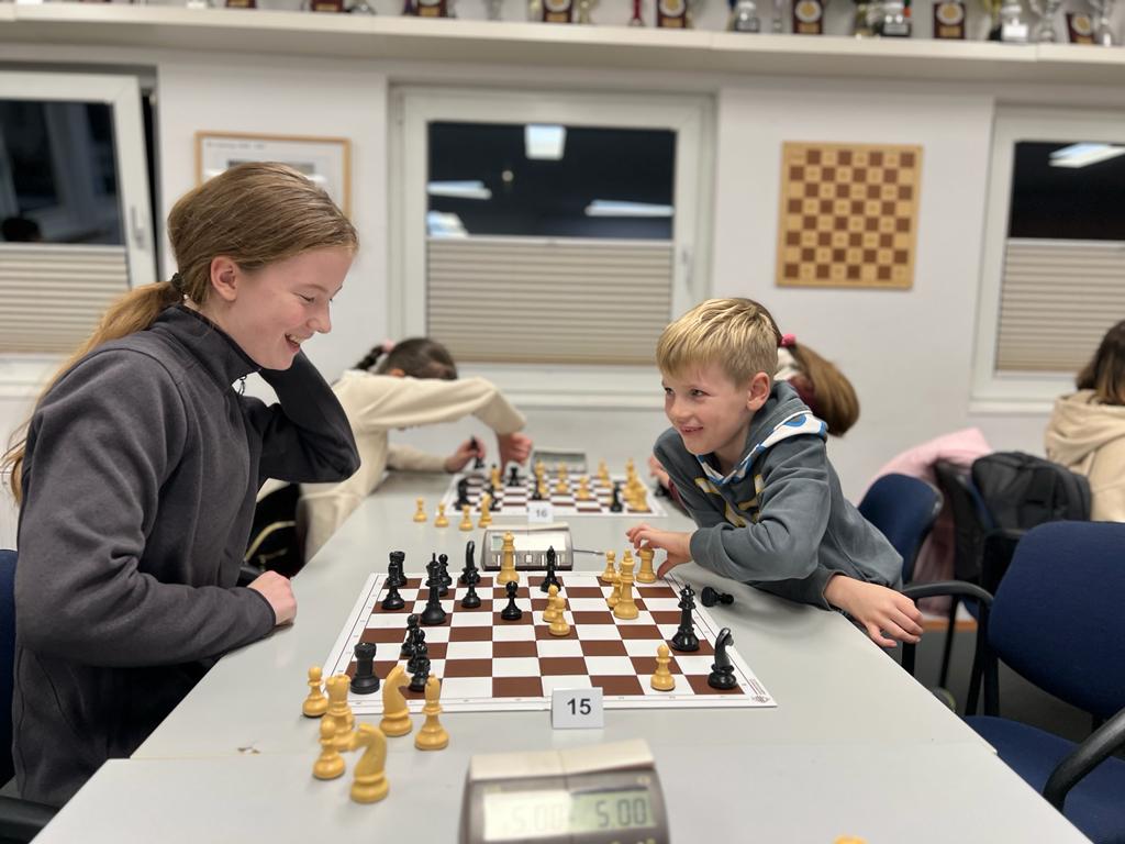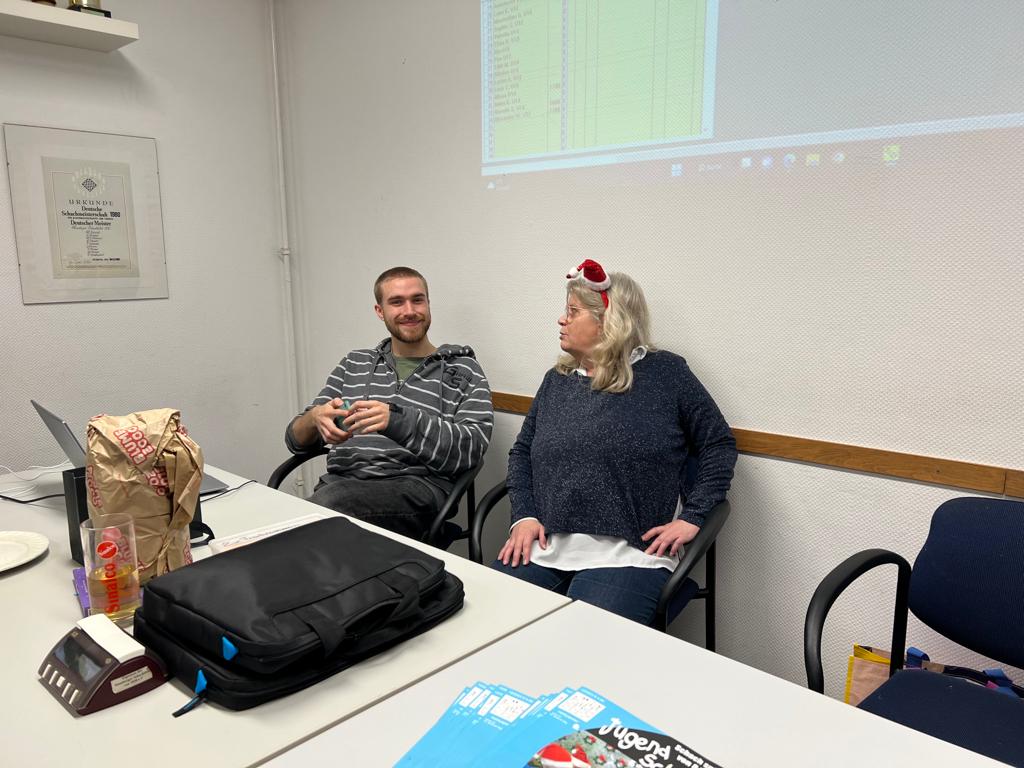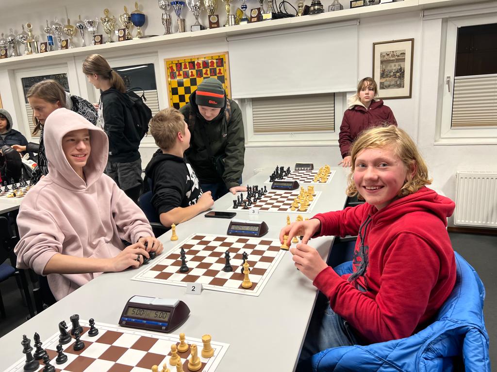 Das Jugend-Weihnachtsblitzen 2023 wurde in 7 Runden von 16 – 18 Uhr ausgetragen: Hier siegte Alexander Wartenberg ungeschlagen mit 6,5 Punkten, das beste Mädchen wurde Alissa Wartenberg auf Platz drei mit 5,5 Punkten, bester U12-Spieler wurde ein Mädchen: Nua Fettan mit 4 Punkten, die den 10. Platz belegen konnte. Den Pokal für den besten Spieler U10 erhielt Elias H. mit 3 Punkten.