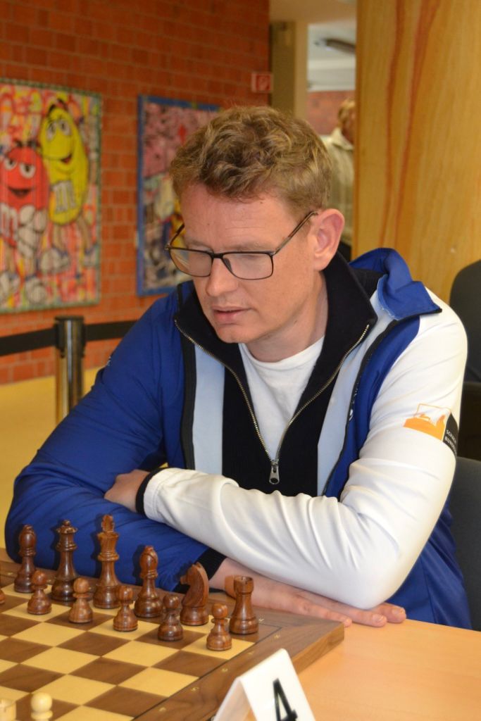 Auch GM Thies Heinemann entschied sich für den Rossolimo-Angriff. Dieser wollte aber den weißfedrigen Läufer behalten, weshalb die Stellung schnell von der auf Konstantins Brett unterschied.