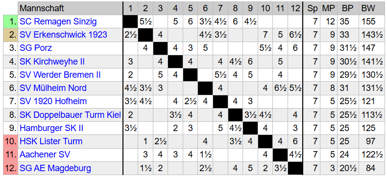 HSK 2 steckt in diesem Jahr nach unglücklichem Saisonverlauf voll im Abstiegskampf und musste in diesem Wettkampf wieder auf viele Spieler verzichten. Nur zwei der ersten acht Spieler konnten aufgeboten werden und durch die Verlegungen in der 1. Bundesliga sind Konstantin Peyrer und Thies Heinemann auch schon in HSK 1 festgespielt.