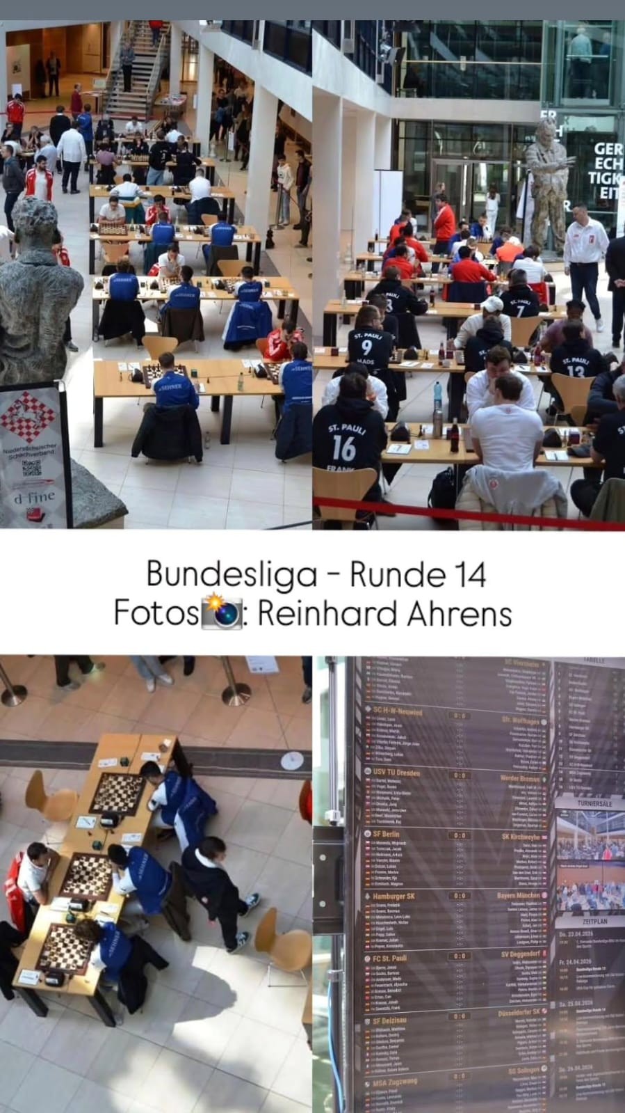 Einen lange 14. Runde gab es heute im Willy-Brandt-Haus, denn im Wettkampf vom HSK gegen Bayern München wurde bis zum 105. Zug gespielt!