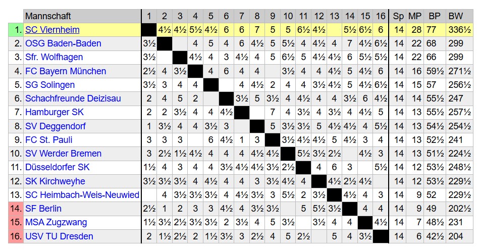 Und die Tabelle nach der 14. Runde zum Genießen: