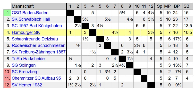 Nachdem Eline Roebers das Team relativ früh in Führung gebracht hat, gab es Schwarz-Niederlagen von Antonia Ziegenfuß und Lepu Coco Zhou und Punkteteilungen von Zsoka Gaal und Judith Fuchs – wobei letztere sehr lange kämpfen musste.