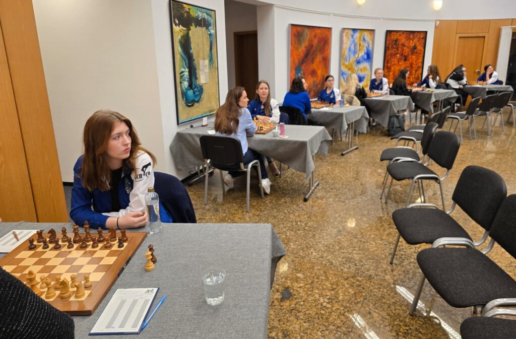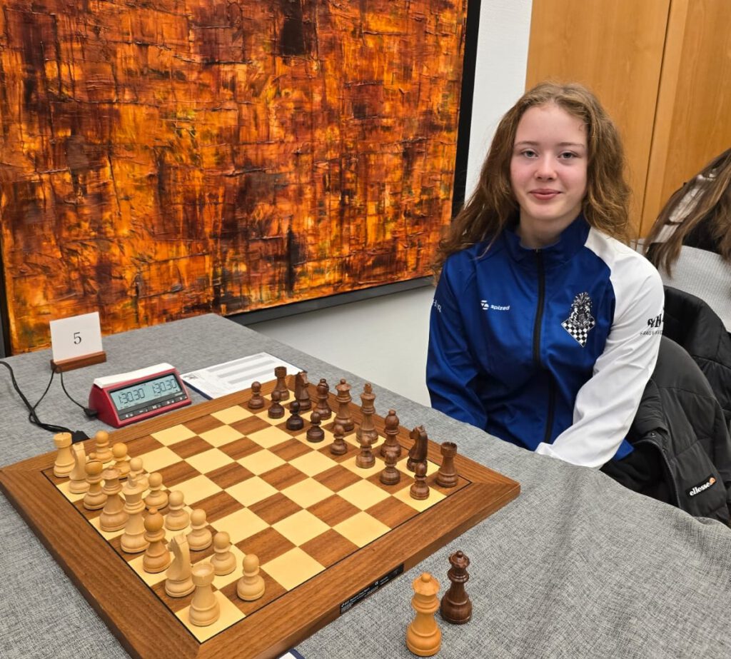 Eline ließ am Spitzenbrett von Anfang an nichts anbrennen. In einer aggressiv geführten Französischen Partie – inklusive h4 und g4 – setzte sie ihre Gegnerin früh unter Druck. Bereits nach 14 Zügen hatte sie 45 Minuten mehr Bedenkzeit und hielt das Tempo hoch. In Zeitnot unterlief der erfahrenen Elena-Luminita Cosma schließlich ein Fehler, und der erste Punkt war eingesammelt. In der Zeitnotphase ging dann alles Schlag auf Schlag. Bei Alisa deutete die Engine ab Zug 18 konstant 0.00 an, sodass die Punkteteilung im 36. Zug keine Überraschung war. Fast zeitgleich gewann Or eine sehr schön gespielte positionelle Partie im Sizilianer: Ein leichter Eröffnungsvorteil wurde Schritt für Schritt ausgebaut, bis erst ein Bauer und kurz darauf die ganze Partie gewonnen war. Kurz darauf punktete auch Sarah. Ihre Partie war lange ausgeglichen, doch taktische Möglichkeiten schwebten stets über dem Brett. Am Ende griff Carmen Voicu-Jagodzinsky fehl – ein einziger ungenauer Zug entschied sofort die Partie.