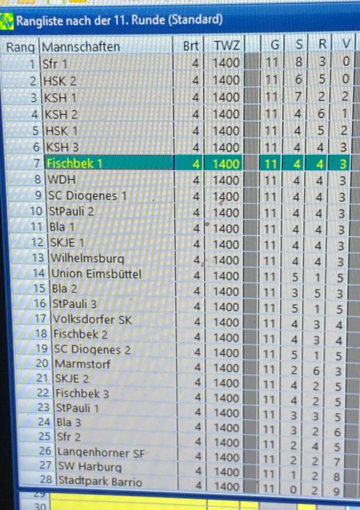 Im AtW trafen sich heute 28 Teams aus den Hamburger Vereinen und spielten in 11 Runden den Hamburger Blitzmannschaftsmeister aus.