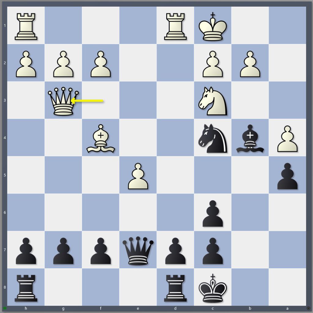 Die schnellste Partie des Abends, Aras spielte mit Schwarz gegen David Goldmann. Nach einer Stunde war schon Schluss, eine komplett ausgeglichene Stellung aus einem geschlossenen Sizilianer heraus. Manche brauchen so lange für die Eröffnung, Aras hatte da schon Remis – gegen diesen starken Gegner natürlich vollkommen ok!