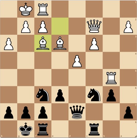 Auch am siebten Brett sah es nicht gut aus, Elvin Bachschisadeh stürmte wie verrückt gegen Dustin Opasiak an. In so einer Partie ist Elvin nie zimperlich, riskiert viel und das wird in der Stadtliga auch gerne mal bestraft. So war es auch heute: 2:2.
