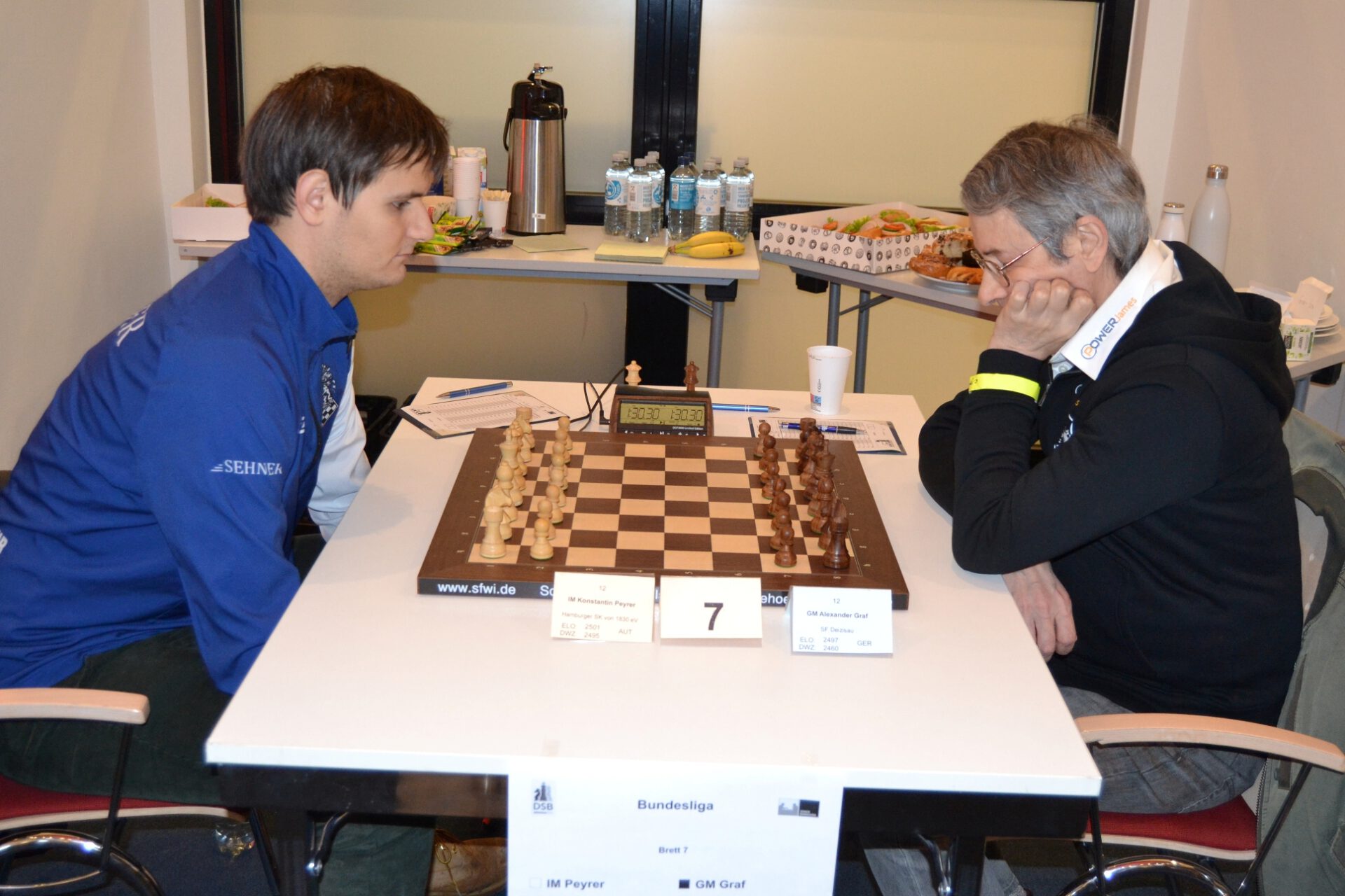 Zwar geriet Jan Gustafsson in einem Gambit gegen Tamas Banusz schon relativ früh unter die Räder, aber Konstantin Peyrer konnte mit einem schnellen Sieg mit schönem Opfer gegen Alexander Graf ausgleichen.