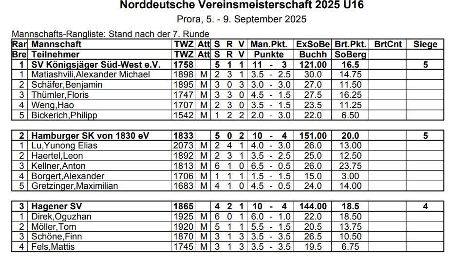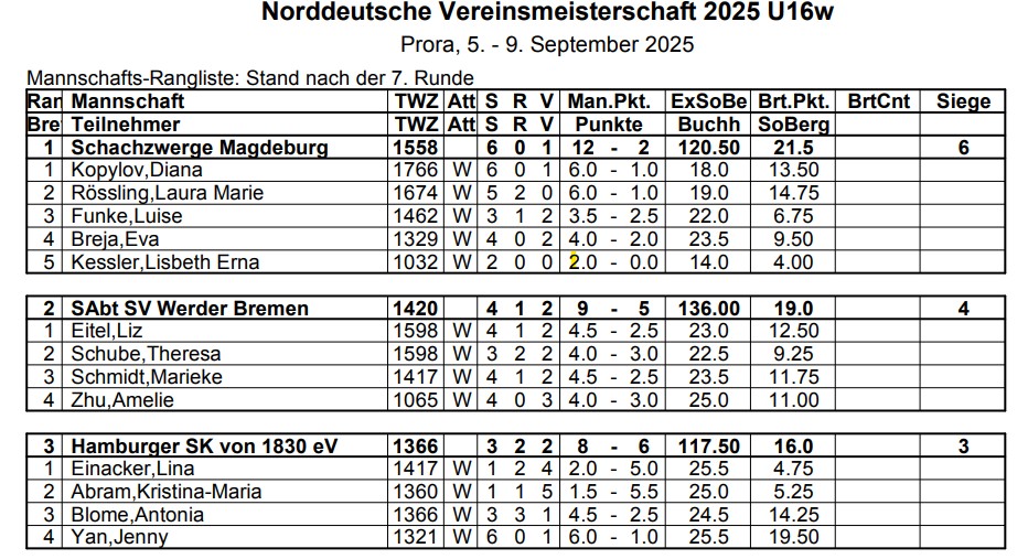 Tabellen und Einzelergebnisse komplett zum Download: U16 und U16w