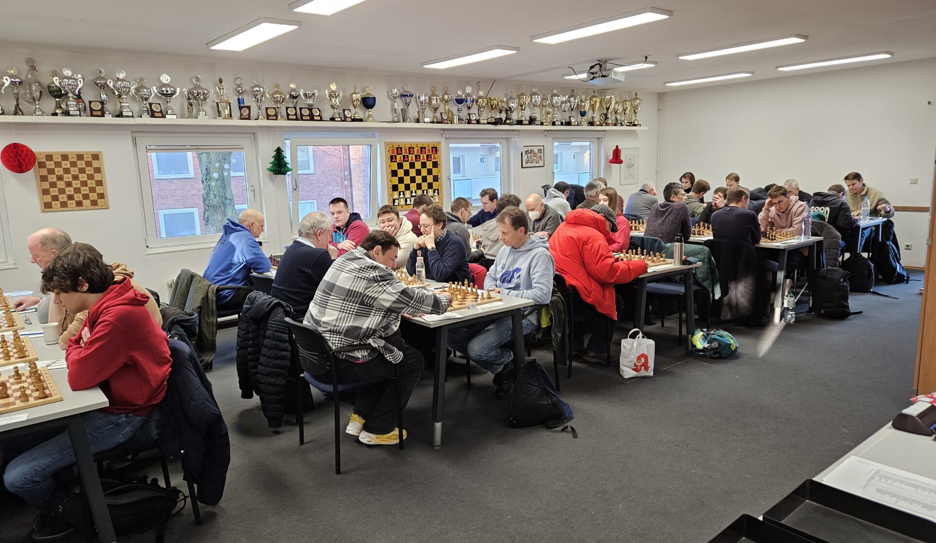 Am heutigen Dienstag, 30. Dezember 2025, ging das Weihnachtsopen zu Ende. Herzliche Gratulation an Malek Koniahli aus HSK 2, der das Turnier mit 6 aus 7 gewann! Er startete mit 4 aus 4 und besonders der Sieg in der 4. Runde gegen Frank Bracker war natürlich wichtig. Dann folgten zwei Remisen gegen IM Malte Colpe und Mats Beecks, bevor er in der Schlussrunde mit einem Schwarzsieg gegen Robin Keyser den Sack zumachte! Das war auch bitter nötig, denn Frank Bracker ließ sich von der Niederlage gar nicht beeindrucken und legte danach erst einmal drei Siege in Folge hin, in der Schlussrunde gar gegen seinen langjährigen Schachfreund Malte Colpe. Den schubste er damit auf den 4. Platz, den auf den 3. Platz schob sich noch Christoph Jablonowski vom SV Babelsberg, der nur einen Top-Ten-Gegner hatte und der mit 3 aus 3 einen starken Schlussspurt hinlegte:
