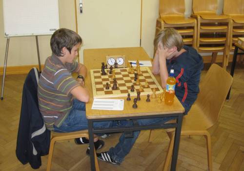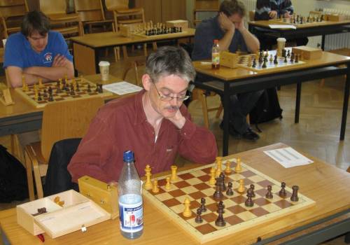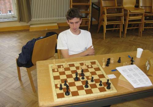 Foto oben: Der amtierende Landesmeister 2009 von Schleswig-Holstein, Aljoscha Feuerstack (Elo 2395), der für den SK Norderstedt in der 2. Bundesliga-Nord spielt, grübelt am Brett.