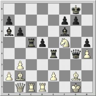 1.d4 d5 2.c4 e6 3.Sf3 Sf6 4.g3 Sbd7 5.Lg2 Ld6?! 6.Sbd2 0-0 7.0-0 b6 8.b3 [8.e4!?] 8...Lb7 9.Lb2 c5 10.cxd5 exd5 11.Se5 Te8 12.Sxd7 Sxd7 13.Sc4 Le7 14.dxc5?! [14.Se3 war genauer.] 14...Sxc5 15.Se3 Se4 16.Sf5 Lf6 17.Sd4 Tc8 18.Tc1 Tc5 19.Dd3?! dies kostet zuviel Zeit und bringt die schwarzen Figuren in bedrohliche Positionen [besser ist 19.b4 (Dautov)] 19...Dc8 20.Tfd1 La6 21.Db1 h5 22.h4 Dg4!? startet den Angriff bevor Weiß sich weiter absichern kann [Nach 22...Sc3?! kann sich Weiß mit 23.Lxc3 Txc3 24.e3 konsolidieren.] 23.f3 [23.e3? Sxf2 24.Kxf2 Txe3 25.Kxe3 Dxg3+ 26.Lf3 (26.Sf3 Lxh4-+) 26...Lxh4-+; 23.Lf3 Dg6 24.Lg2 (24.Kg2?! Lxh4 25.Th1 Lxg3 26.Lxe4 Txe4 27.fxg3 h4 mit Angriff) 24...Txc1 25.Txc1 Lxd4 26.Lxd4 Lxe2 27.Tc7 Dg4 mit Angriff] 23...Dxg3 24.fxe4 Txe4 25.Sf5 [25.Txc5? De3+ 26.Kf1 Lxh4 27.Tc8+ Lxc8 28.Lxe4 Df2#] 25...Dg4!