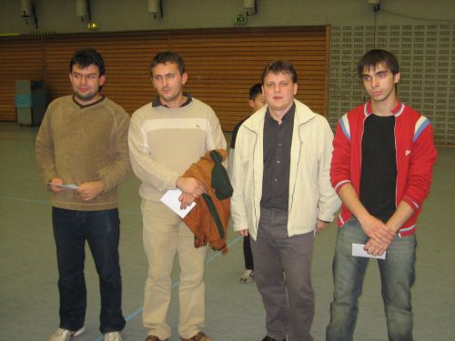 Die vier Sieger von links: GM Stelios Halkias, GM Ivan Ivanisevic, GM Vladimir Baklan